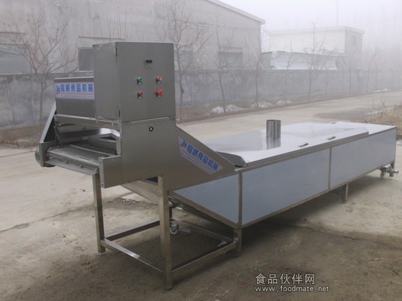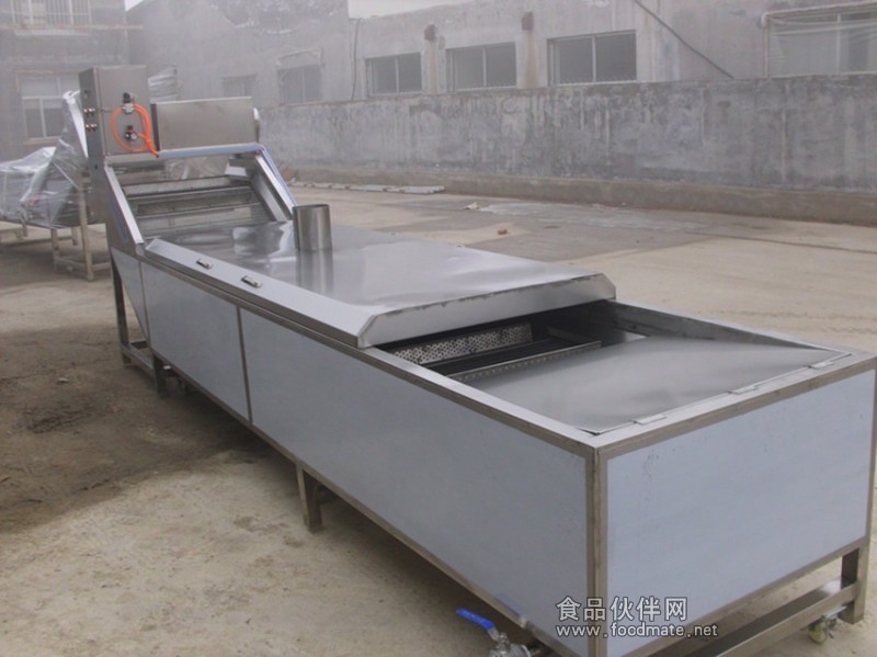 漂烫机主要针对各种蔬菜,瓜果,肉制品的前期处理加工。整机分为漂烫段跟冷却段两部分组成。采用蒸汽加热。温度可调控,输送采用变频调速电机,速度可调。可针对不同的产品进行调节。整机设计为独立内胆结构,外形框架焊接而成,结实耐用,增长设备使用寿命。内胆结构的优点首先便于清洗,保证设备的清洁度。其次网带不受框架限制,那怕较严重的碰撞受损,也不影响网带的输送。